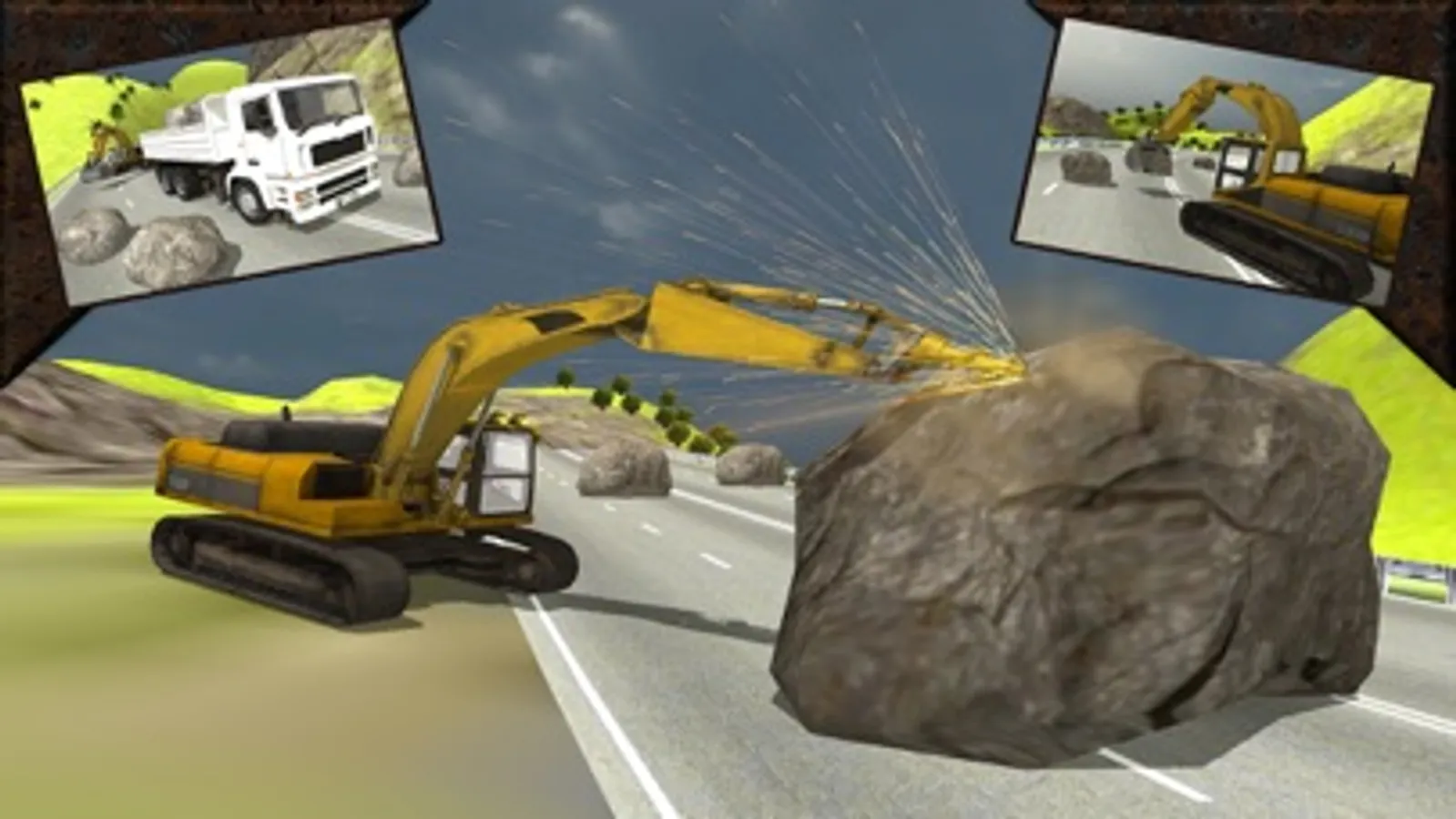 Earthquake has caused a massive landsliding near hilly area where tourists are exploring the nature. Rock fall has damaged many cars on road and traffic is stuck on highway. Lead your construction crew to a rescue mission to save innocent lives. Drive heavy trucks to the affected area and with the help of cranes, clear the road from big rocks. Ensure that road is clear so that the traffic may flow smoothly.