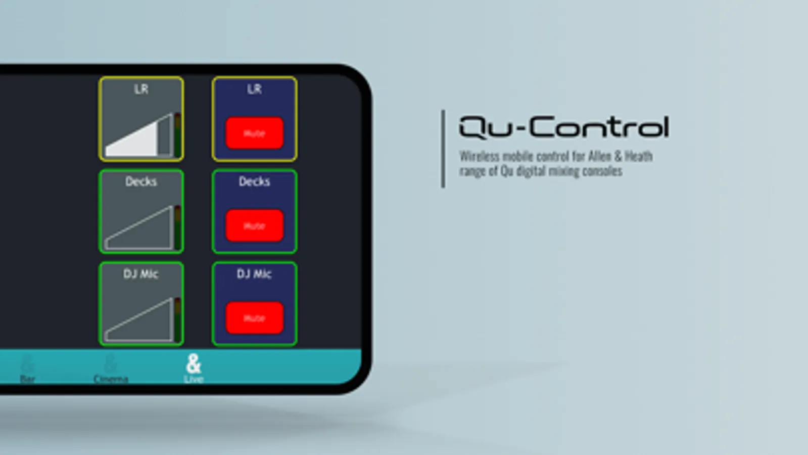 Qu-Control provides wireless mobile control for an Allen & Heath Qu digital mixing console.With simple configuration and set-up, it gives focused control of Qu consoles to those who only need access to some parameters, e.g. levels or mutes.