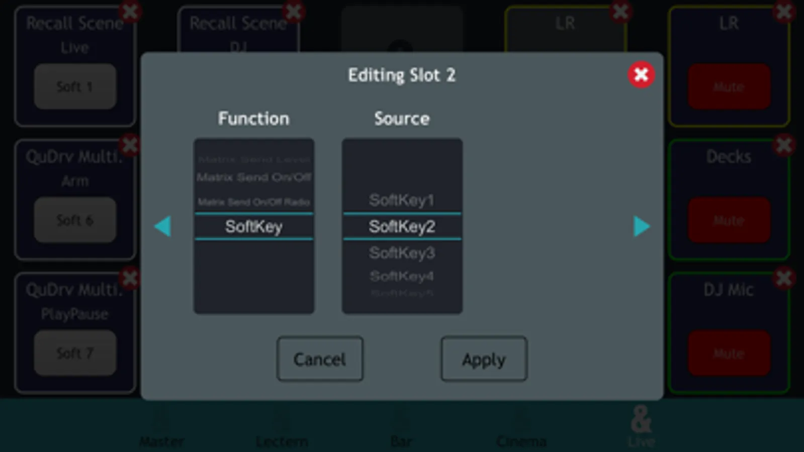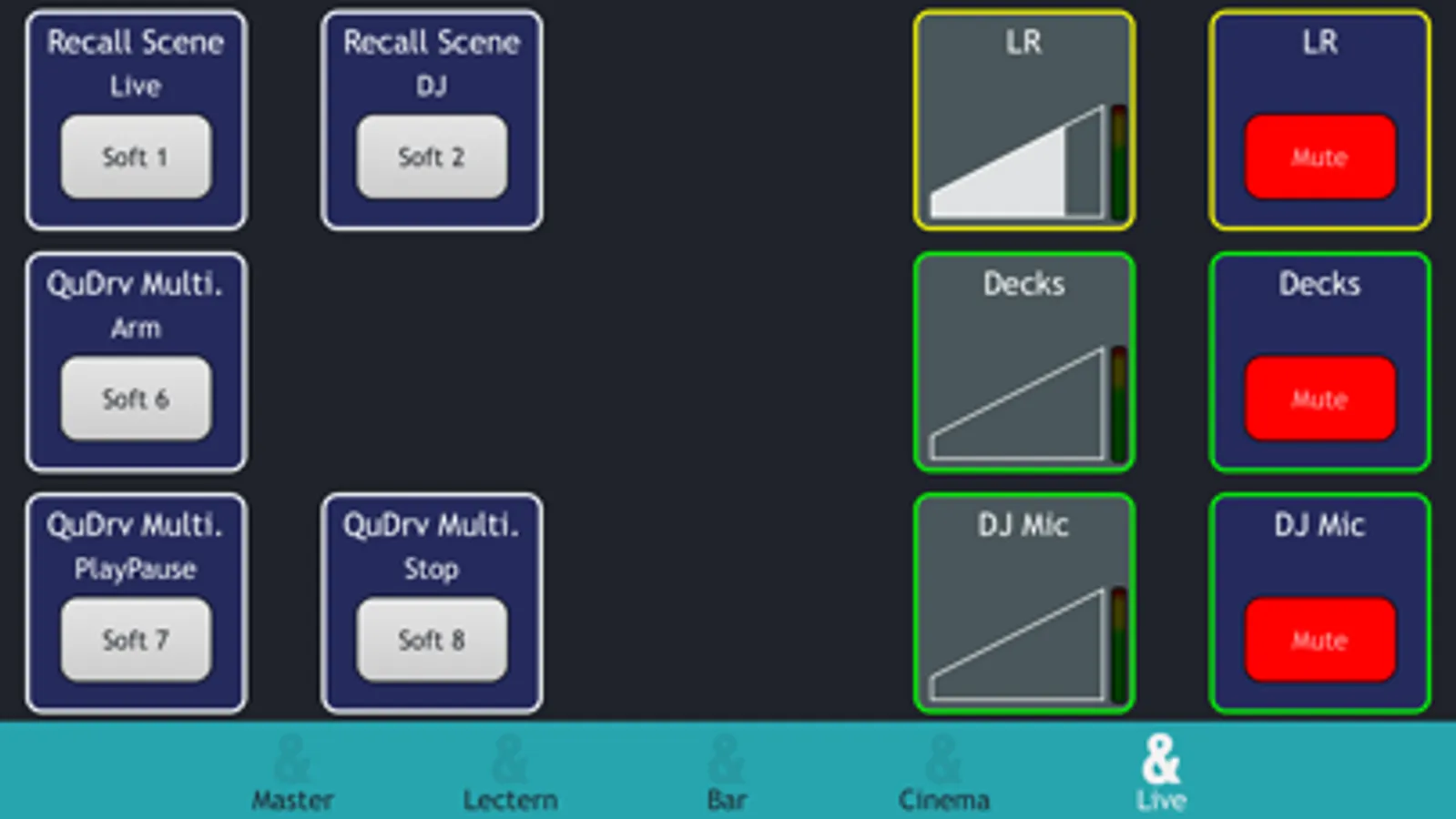 Typical applications include simple source selection to more complex venue audio management.Qu-Control can also be used to control send levels to a single mix for monitoring, recording or live streaming.