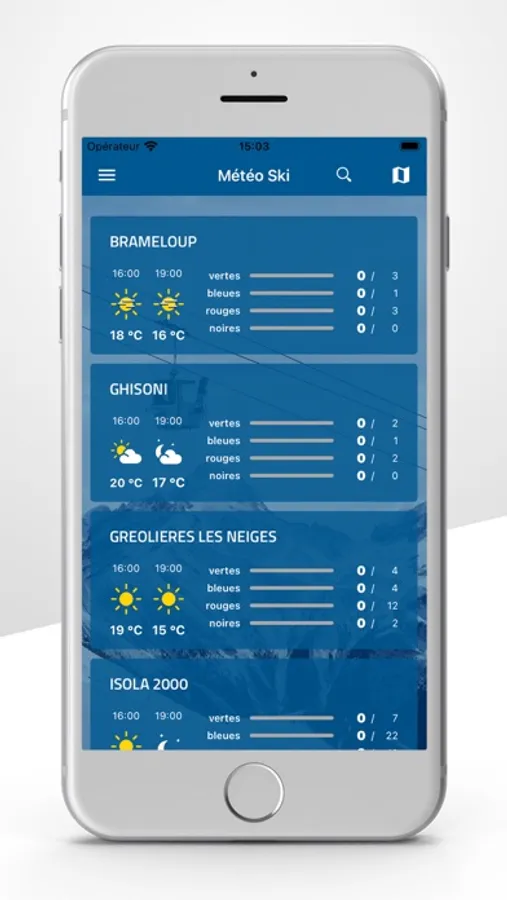 « Météo-France ski et Neige» couvre l'ensemble des massifs montagneux français : les Alpes, les Pyrénées, le Massif Central, les Vosges et le Jura, sans oublier la Corse ainsi que les stations d'Andorre avec des prévisions météo, des informations sur l'enneigement, les bulletins de risques d'avalanche, et les données actualisées pour chacune des 250 stations proposées parmi lesquelles Tignes, Les Arcs, La Mongie, Super-Besse, les Rousses et La Plagne.