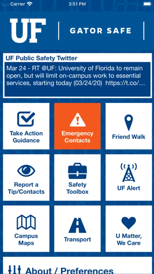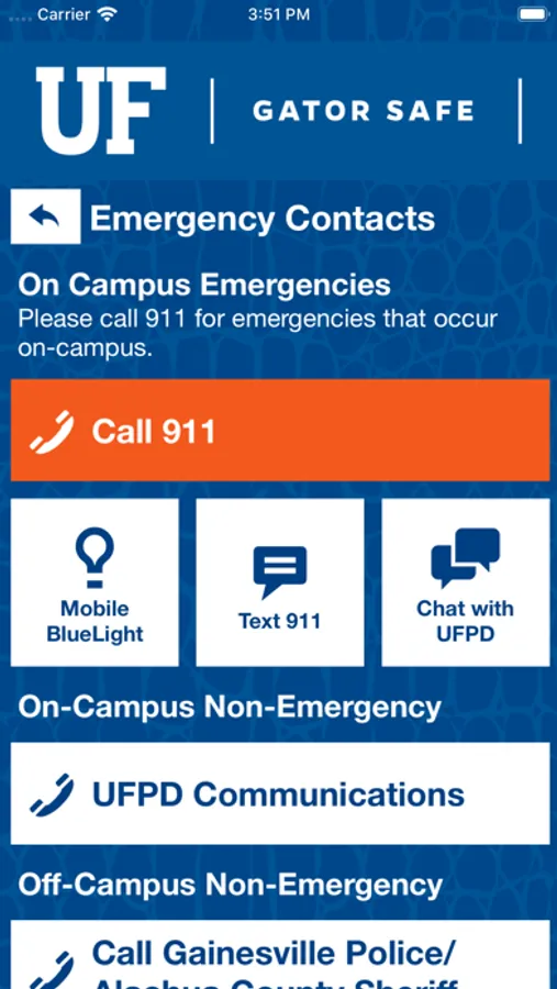 - Mobile BlueLight: Send your location to UFPD in real-time in case of a crisis
