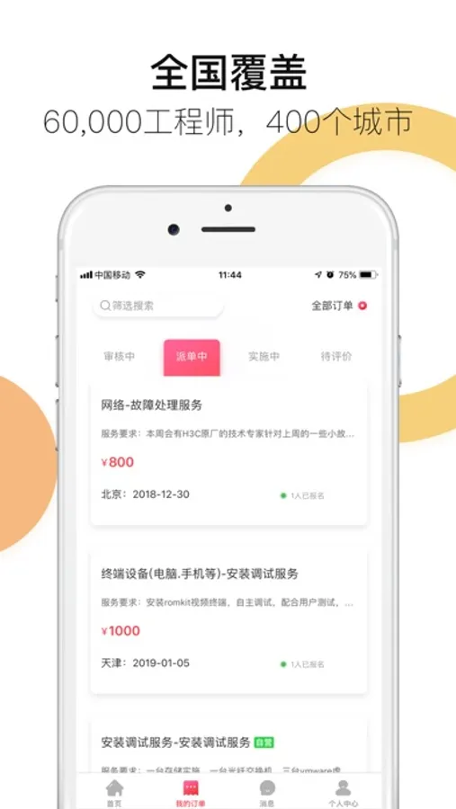 2、透明:平台按用户需求精确派单,服务状态实时更新;
