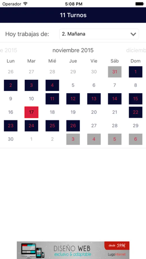 Acceder a tu calendario de trabajo y visualizar tus días de descanso desde tu móvil o tablet, y de un simple vistazo, es posible con la APP 11 turnos. Cuenta con una plantilla con el calendario, mes a mes, con todas las variantes de 11 turnos que pueden ser utilizados por las principales fuerzas del estado en España
