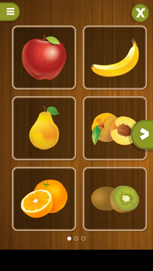 The app is designed in different screens where children select an image and a voice will tell them the name of the chosen fruit.
