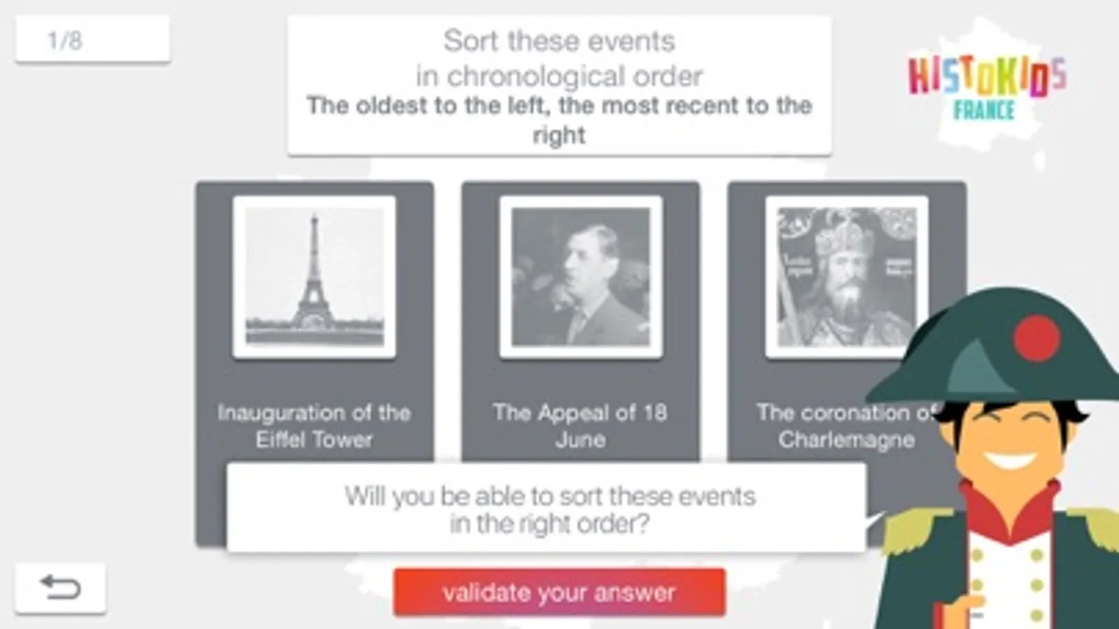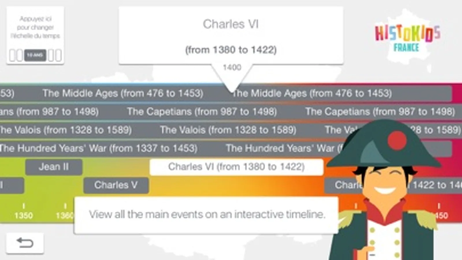 In the adventure mode you're gonna learn the France History with Napoleon. You'll find events to sort, quiz to answer and periods to rank.