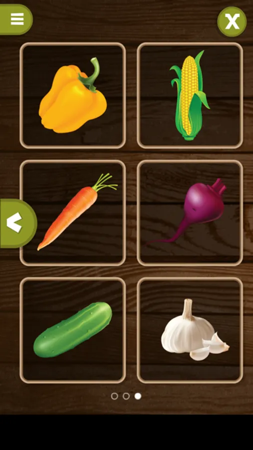 The app is designed in different screens where children select an image and a voice will tell them the name of the chosen vegetable.