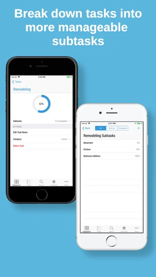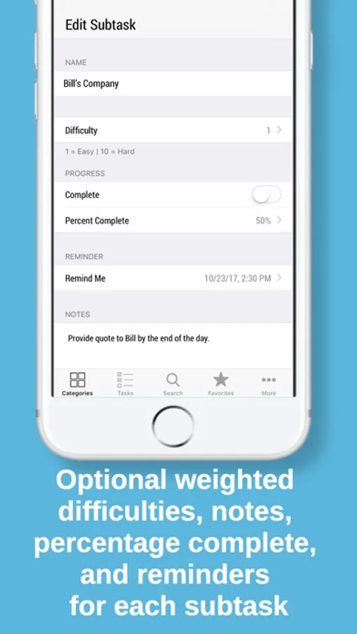 • Optional weighted difficulties, notes, and reminders are available for use on all subtasks