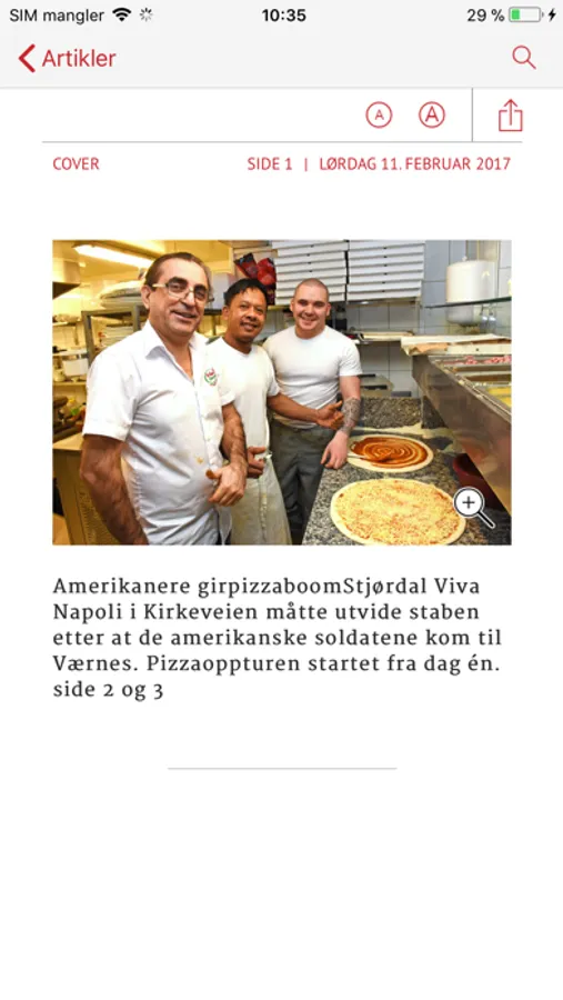 - Mulighet for å bla gjennom sidene, zoome inn på bilder og artikler.