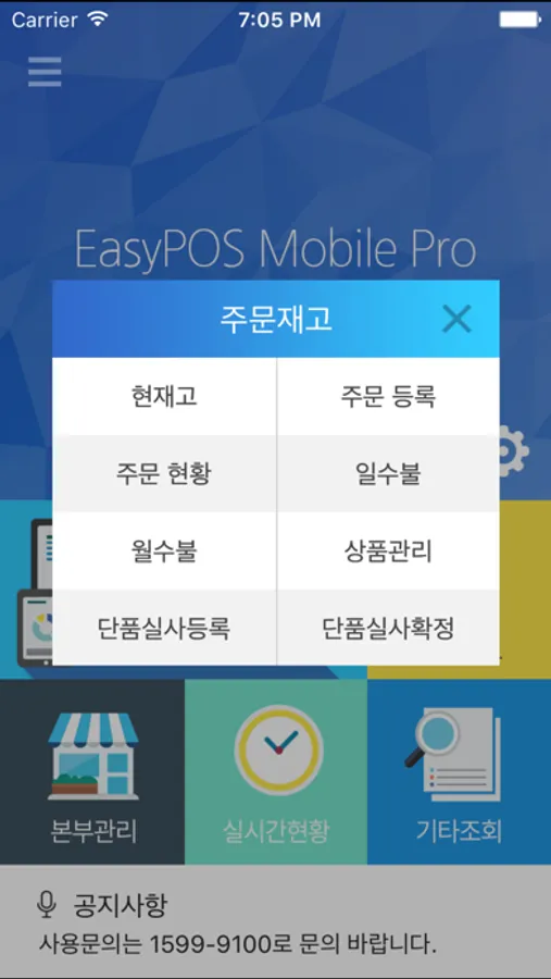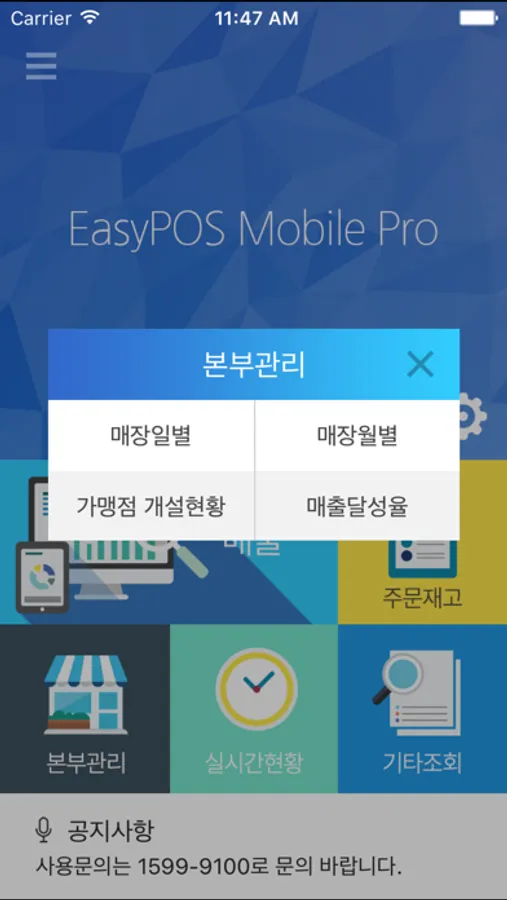 기존의 간단한 이지포스 매출조회에서 풍부한 매출분석 기능과 수발주, 푸시, 실시간주문현황 등 다양한 모바일 기능이 탑재된 어플리케이션입니다.