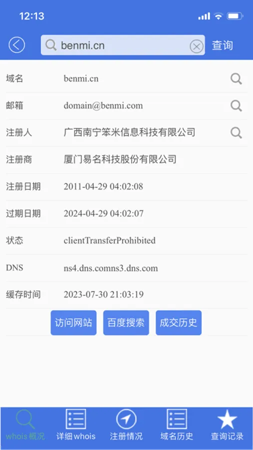 及时记录域名whois历史信息变化,可查历史域名注册信息,可对比查看;