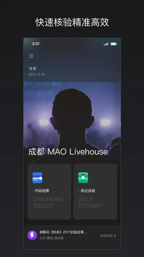 很方便地在演出开始前通过扫描二维码或输入手机号的方式进行验票。