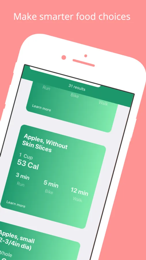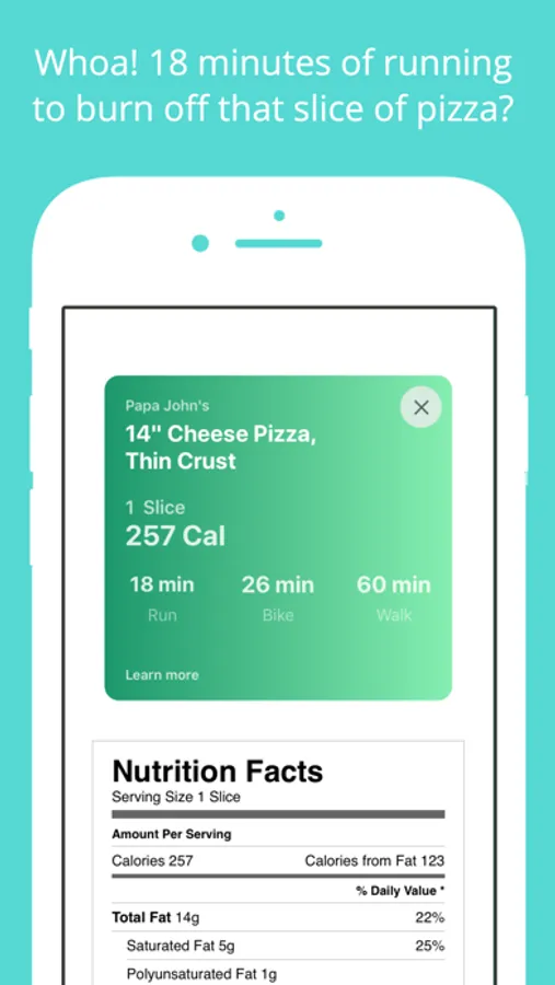 Our app can help you determine how many minutes of running, walking, or biking is required to burn off a particular food!
