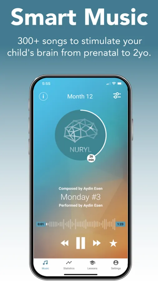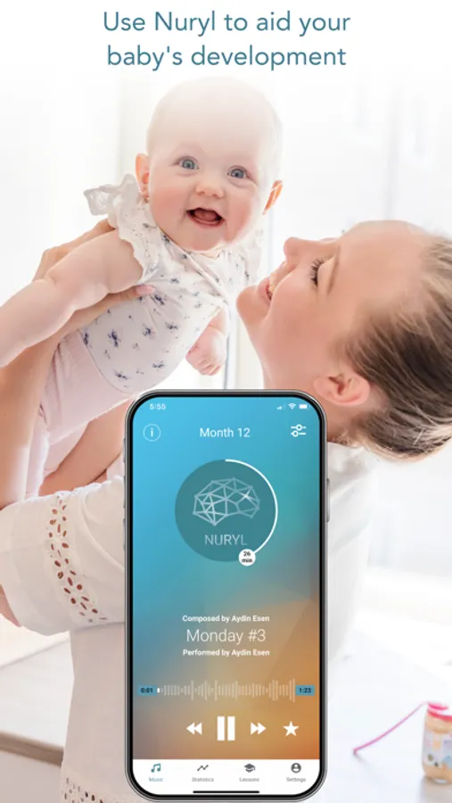 The Nuryl baby app and its musical curriculum are designed to stimulate your baby's brain through parental interaction while listening to complex musical arrangements that are highly melodic and complex. Unlike other baby apps, Nuryl is meant to be used when they are awake and alert so they can absorb the music and become familiar with the different melodies that will encourage brain development. Find out more about the Nuryl concepts by watching the How-To video inside of our app, and learn why thousands of other pregnant moms and new parents from all over the world are using Nuryl with their baby now!
