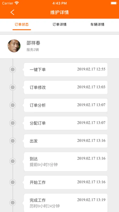 4、客户端功能:订单进程消息提醒、维护地点管理、企业车辆管理、违章查询、在线查车、订单发起/一键下单、常见问题咨询等功能。