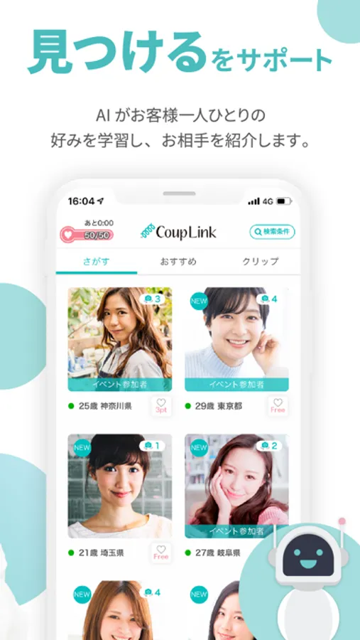 カップリンクは『お客様に恋人ができるまでをサポートする』をコンセプトとした、真面目な出会いを探したい人のための恋活・婚活マッチングアプリです。