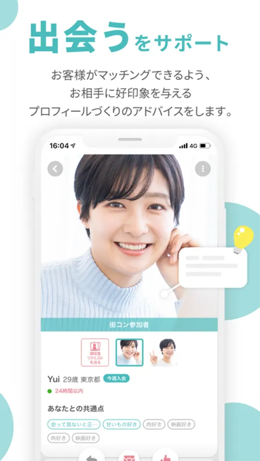 また、毎月利用者アンケートを実施し、お客様の声をもとに日々出会いを探しやすい環境づくりのための改善を行っています。