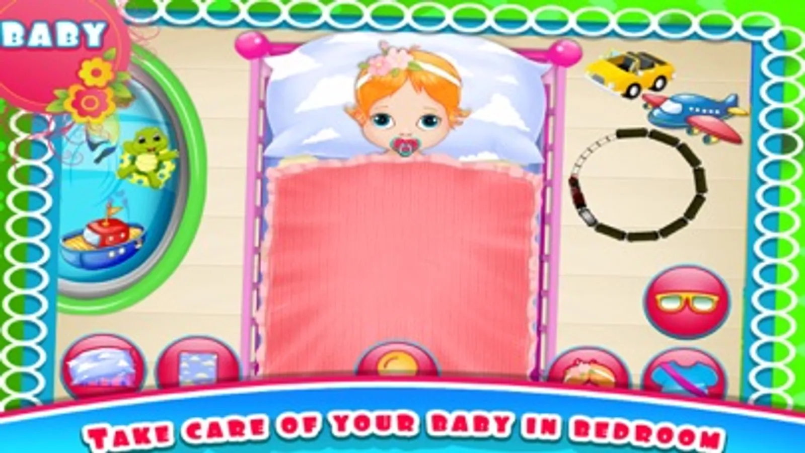 Take care of Mommy's New Born Baby, Tap on all toys and produce awesome sounds for baby to keep the baby happy, Play Adventure mini games and take care of Baby.