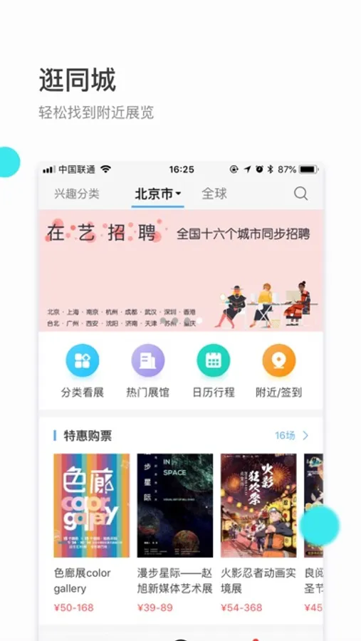 在艺是一款艺术生活服务和点评社交应用,提供每日全球最新艺术展览、艺术作品和同城艺术活动信息,并鼓励用户点评、记录、分享自己的艺术见解和艺术生活。