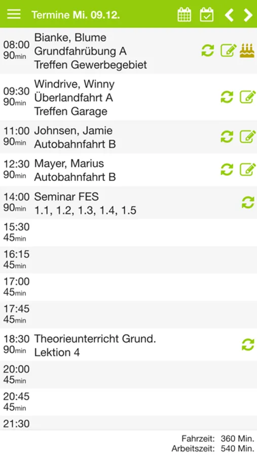 • Erstellen und Verwalten von Fahrstunden, Prüfungen, Theorieunterrichten, Seminaren und sonstigen Leistungen