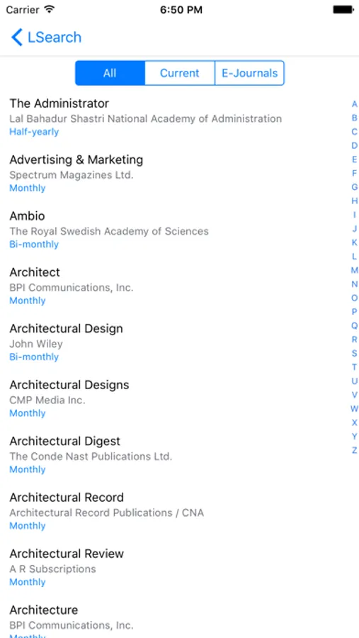 LSearch is an app providing access of your library OPAC on the fly. The App directly connects your device to your library server for real time information retrieval . The smartly designed interface gives a joyful library experience.