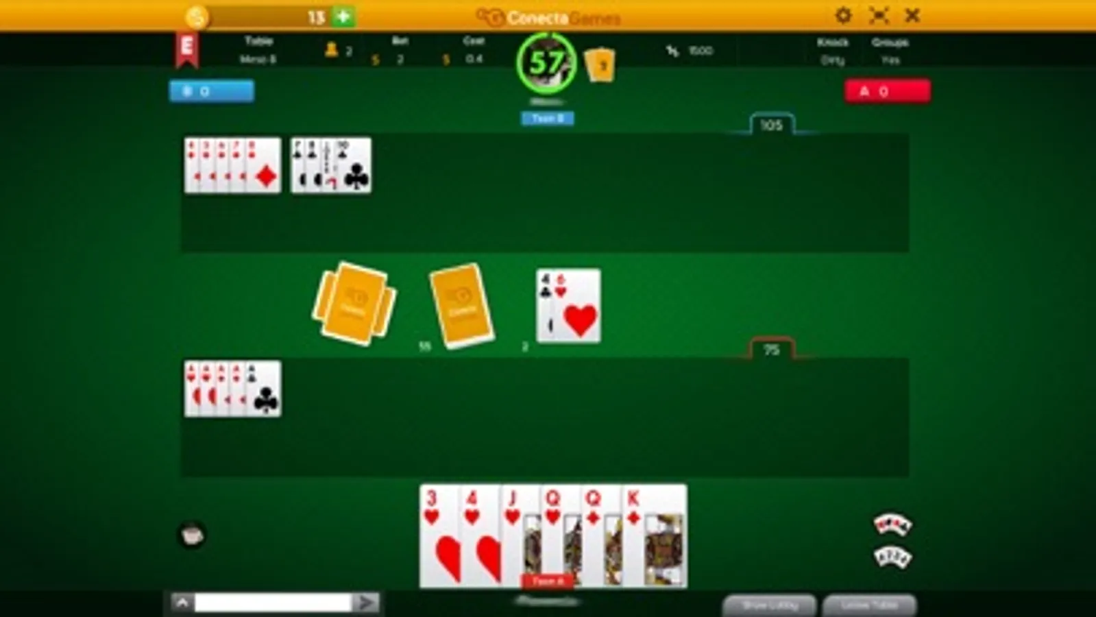 You can play Buraco with real opponents and Facebook friends. Invite your Facebook friends and enjoy!