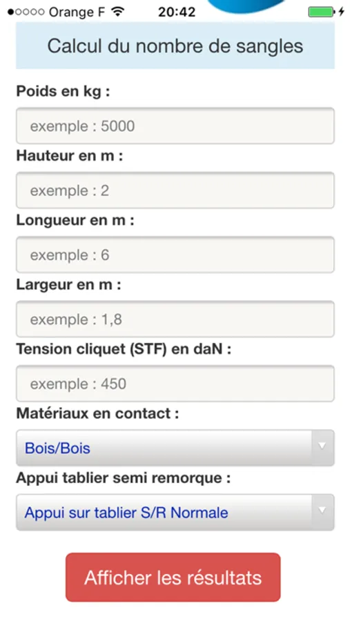 Cette application est un calculateur du nombre de sangles permettant la sécurisation d'un chargement de marchandises selon la norme EN 12195-1