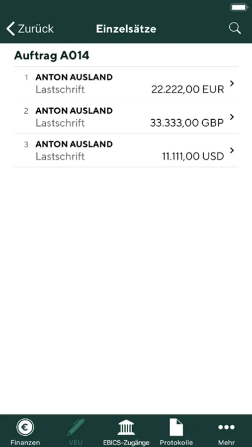 - Verteilte Elektronische Unterschrift (VEU): Vorbereitete Zahlungsverkehrsaufträge und Auftragsdetails standort- und zeitunabhängig einsehen und freigeben. Das aktuell gültige Berechtigungskonzept bleibt bestehen.
