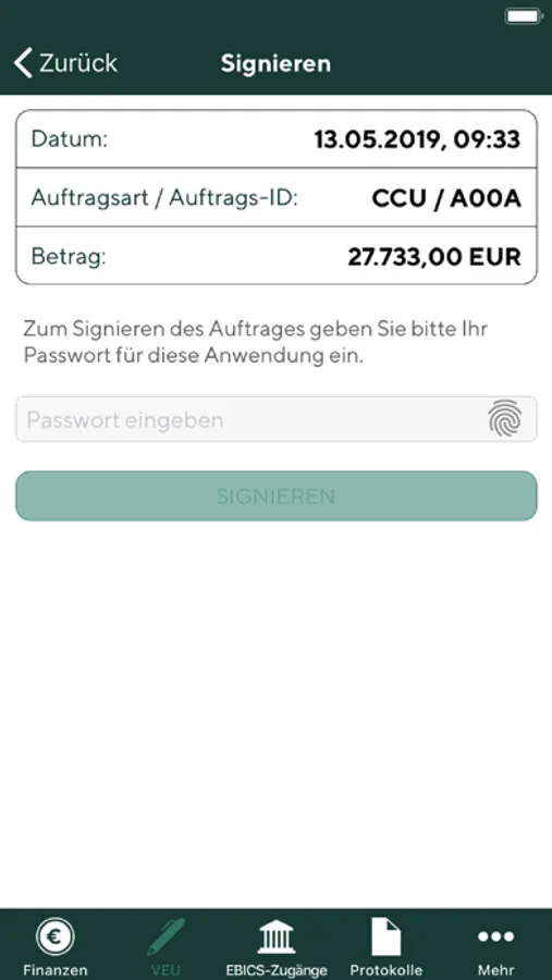 Die App ist aufgrund moderner Sicherheitsstandards vor Missbrauch geschützt. Die elektronische Unterschrift findet darin Anwendung für die Freigabe von Zahlungen.