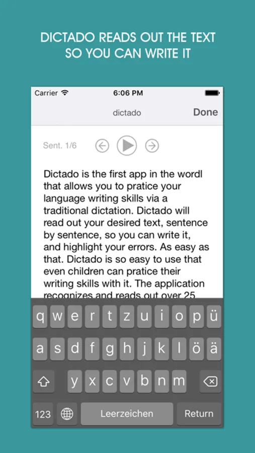 Dictado is the first app in the world that allows you to practice your language writing skills via a traditional dictation.