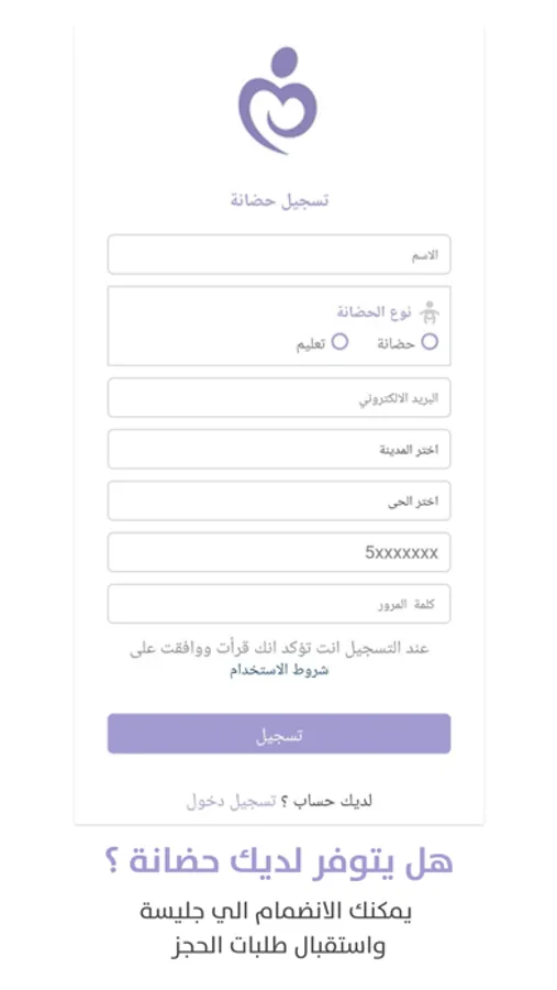 تطبيق خدمي عبارة عن منصة تخدم الأمهات والحاضنات و نهتم برعاية الطفل في بيئة تتناسب مع معايير النمو للطفل