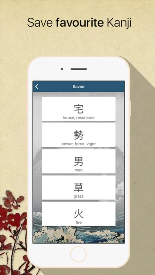 - Save your favourite kanji for quick access.