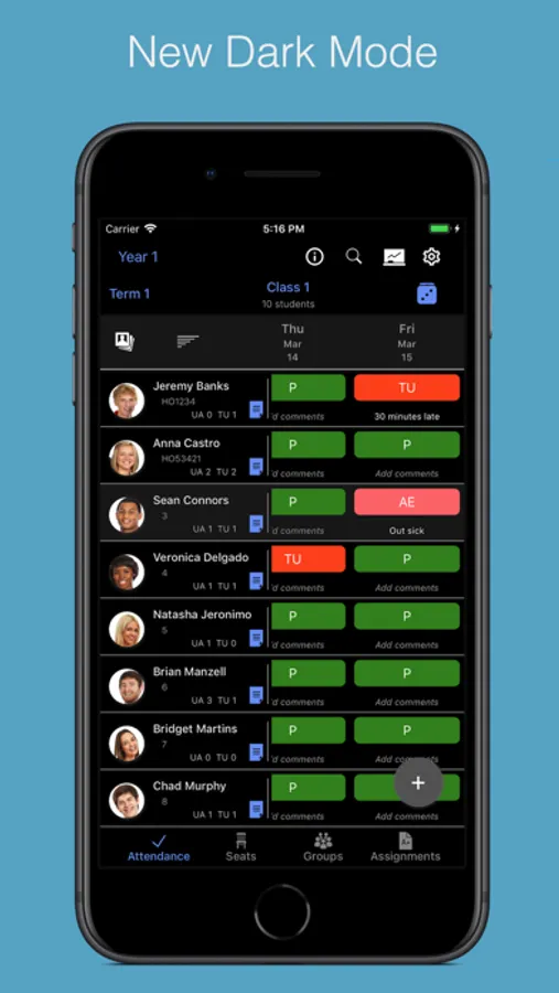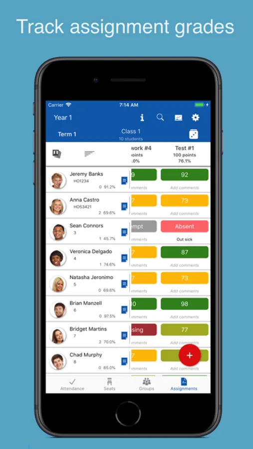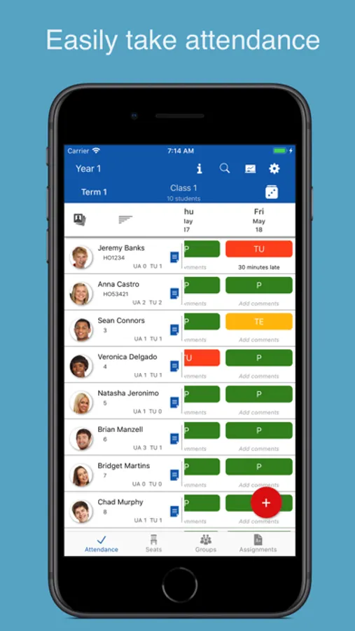 Teacher Aide Pro allows full use of the attendance and gradebook for up to 20 classes for free. An auto-renewable monthly subscription allows access to additional features such as the seating chart, PDF reports and the At-Risk student screen for classes beyond the first class.