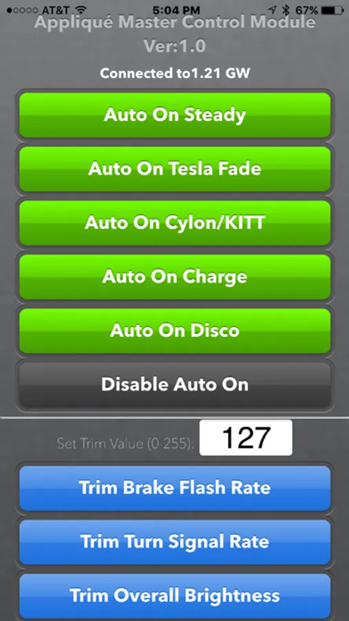 Control the Rear Appliqué light bar with this app. Requires Bluetooth LE.