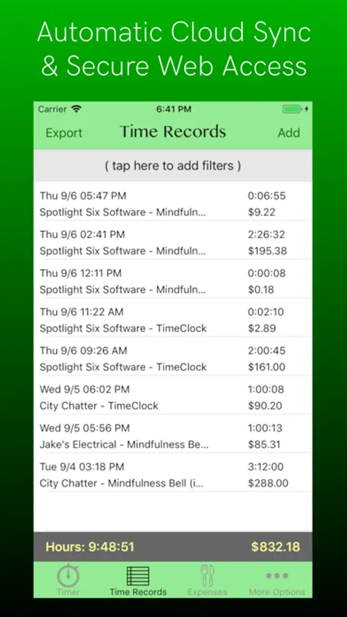 * Simple and intuitive: you'll be tracking your billable hours and expenses within minutes of installing the app.