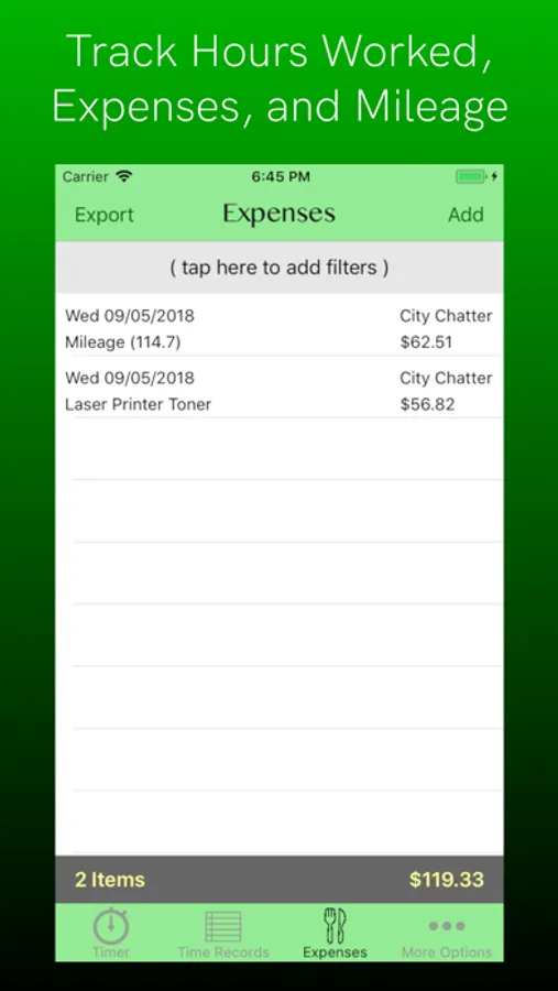 * Track expenses along with your billable hours. Set up predefined expenses for recurring expense items. Manage and export your expenses from the app or from your TimeClock Connect account.