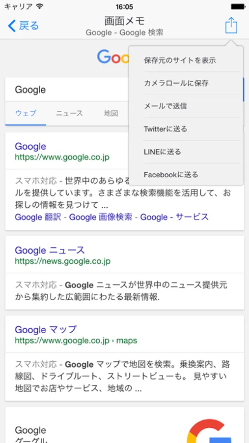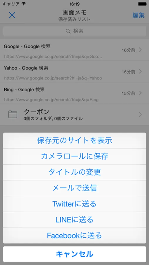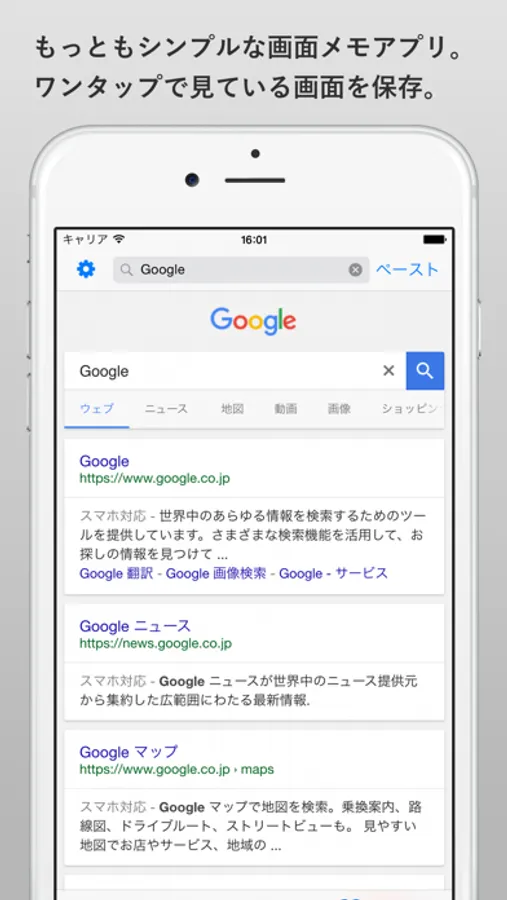 画面メモとしてWEBサイトやクーポンを保存できる、もっともシンプルなアプリです。