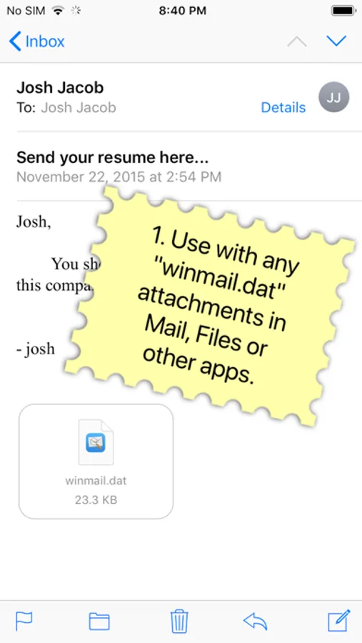 TNEF's Enough allows your iPhone, iPad or iPod Touch to read and extract files from Microsoft TNEF files. The files are usually received via email from Microsoft Exchange and Microsoft Outlook users. Standard e-mail programs will receive the TNEF file as an attachment named "winmail.dat."