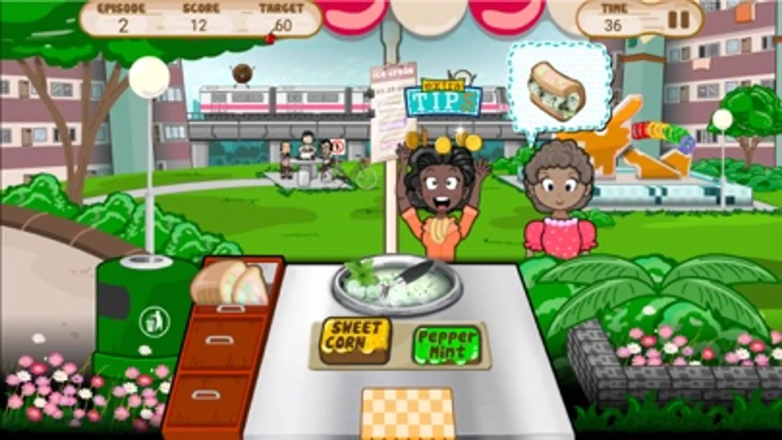 You will get to serve many of the classic ice cream like Potong ice cream, sweetcorn ice cream on bread, wafer and in cups or cones. Make new waffles ice cream as Ice Cream Uncle tries to up his game and attract more customers!