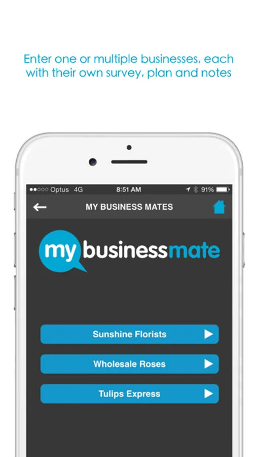 Getting started is easy, simply enter your business name and you are off and running. You can also create multiple business Mates, each with their own survey, plan and notes.