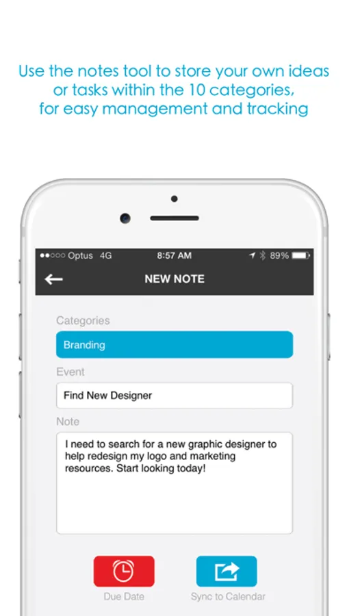 Business owners are very busy and the notes tool is ideal for storing ideas, within the 10 categories for easy reference. You can also schedule your notes to action, in the same way as the plan.