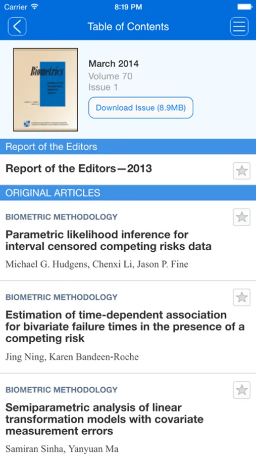 - Access your personal or institutional subscription to Biometrics on your iPad (institutional subscribers require “roaming access” setup on Wiley Online Library)