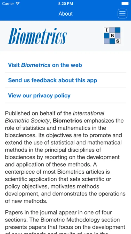 A leading statistics journal is now available on your iPad and iPhone. Fresh from the newsstand, “Biometrics” emphasizes the role of statistics and mathematics in the biosciences. Its objectives are to promote and extend the use of statistical and mathematical methods in the principal disciplines of biosciences by reporting on the development and application of these methods. Enjoy an entirely new browsing and reading experience, and keep up to date with the most important developments in statistics research even faster:
