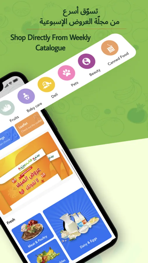 شراء المقاضي لم يكن يوماً بهذه السهولة. سهولة استخدام تطبيقنا تمكنكم من شراء المقاضي بضغطة زر. وفروا أوقاتكم من خلال طلب المواد الغذائية والمنزلية أون لاين من بنده و هايبر بنده وفي أي وقت وسيقوم متسوقكم الخاص بجمعها لكم وتوصيلها من السوبرماركت لبابك.