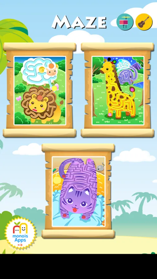 When you press the fruit button, fruit will appear during the course of the maze. Pick up the fruit on your way to the goal.
