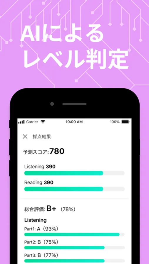 100万人を超えるabceedユーザーの学習データにもとづき、問題を解くだけであなたのTOEICスコア/語彙レベルをリアルタイムに算出します。