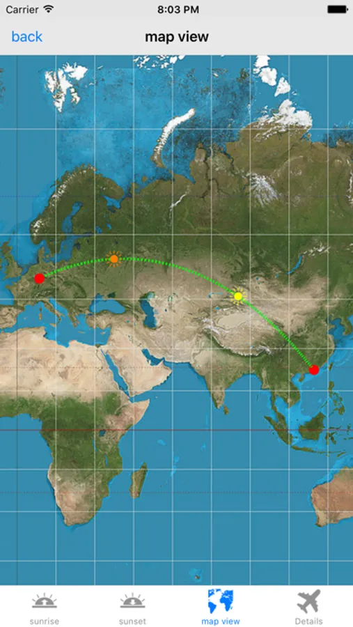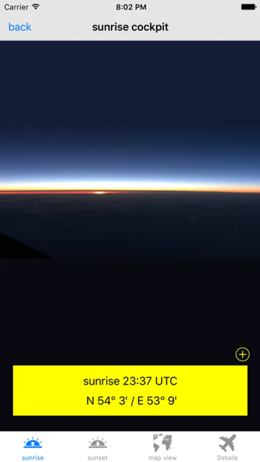 The Sunrise Cockpit App calculates the exact sunrise and sunset on the plane during the flight.