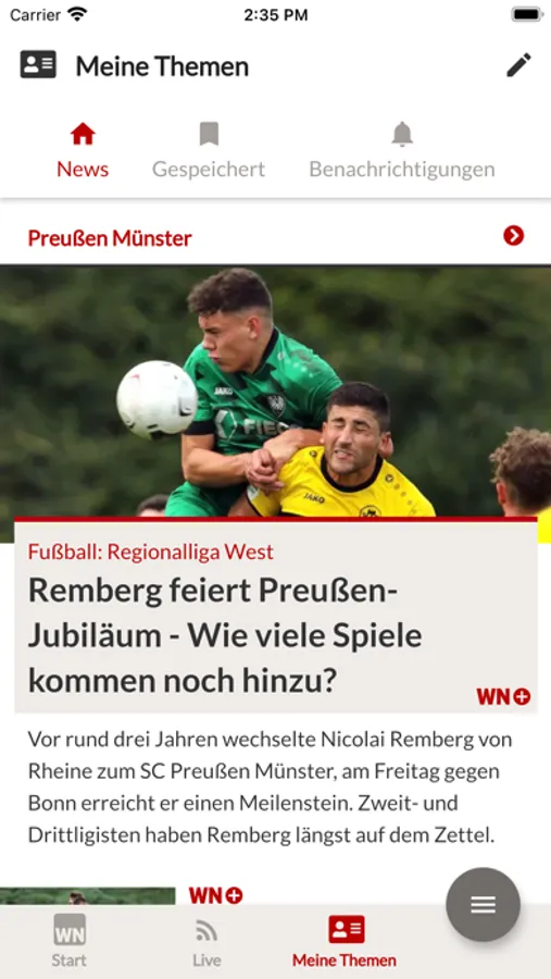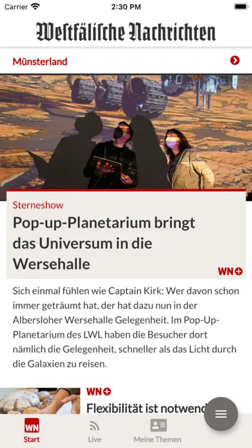 Loggen Sie sich mit Ihrem WN-Account ein und stellen Sie sich in wenigen Sekunden Ihre ganz persönliche App zusammen – lesen Sie, was Sie wirklich interessiert. Sind Sie Fan des SC Preußen Münster oder interessieren Sie sich für allgemeine Nachrichten, Sport und Kultur? Dann wählen Sie Ihre Themen individuell aus und finden alle Neuigkeiten direkt beim Start der App – ohne langes Suchen - auf der Startseite.