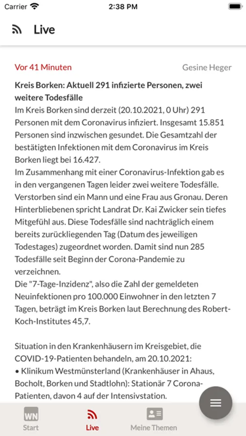 Ein Schwerpunkt liegt dabei auf der regionalen Berichterstattung. Egal ob Sie in Münster, Steinfurt, Ahlen oder Lengerich leben: Unter dem Abschnitt “Meine Themen” können Sie beliebig viele Städte oder Gemeinden aus dem Münsterland auswählen und Ihre persönliche Nachrichtenauswahl noch stärker auf Ihre Bedürfnisse zuschneiden.