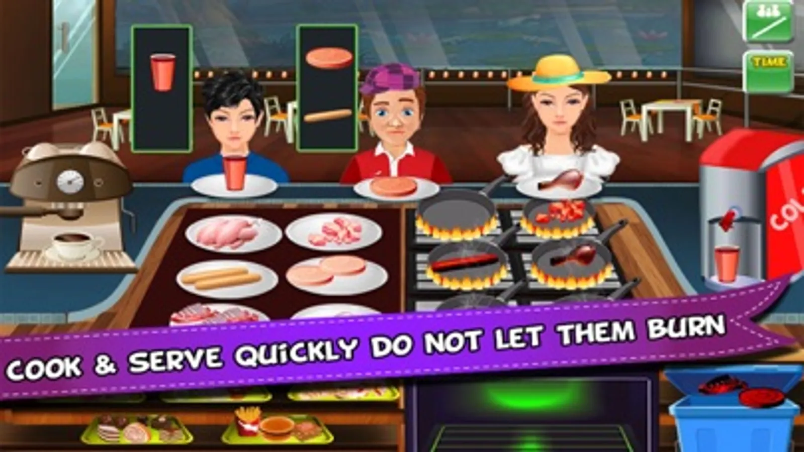 Everybody loves cooking both girls and boys, cooking food in the kitchen is a fun job to do. Some girls help their mom in cooking whereas boys cook for fun and delicious taste. Same cooking experience your are going to experience in this time management game,there is going to be a big rush of customers soon, it will be challenging for you to serve them timely and fulfill their appetite some customers are going to be very hungry you gotta serve them early otherwise they might get angry. So, its time to sharpen your cooking skills and settle down your cooking fever, you will be serving your customers with variety of tasty food, you will be frying seafood, serving customers with hot and crispy burgers, french fries, hot dogs, drinks, coffee, steaks,ham burgers,pizzas, crispy chicken,salads, and much more. Be an expert cooking chef and fulfill the customers demands before the time runs out. Various kind of sweet & yummy bakery items like pastries,cupcakes, donuts etc are special desserts of crazy chef restaurant. Time to quench your kitchen fever, like a big restaurant you will be offering your customers with healthy,nutritious & organic breakfast cafe food lunch, dinner and midway deals.