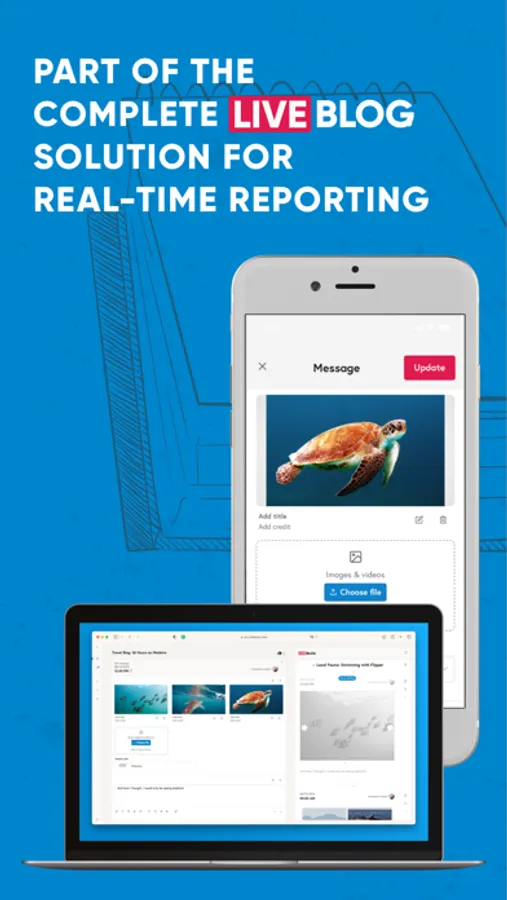 Using our mobile app, organizations can give a variety of on-site reporters and photographers access to a single live blog. This allows professionals to work concurrently: writing text, publishing photos and videos, integrating social media content, and even connecting with users.